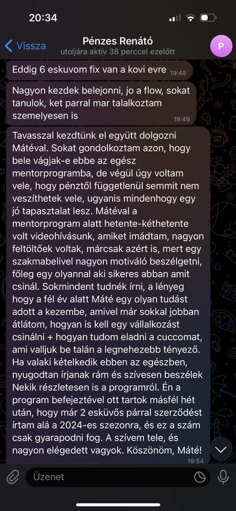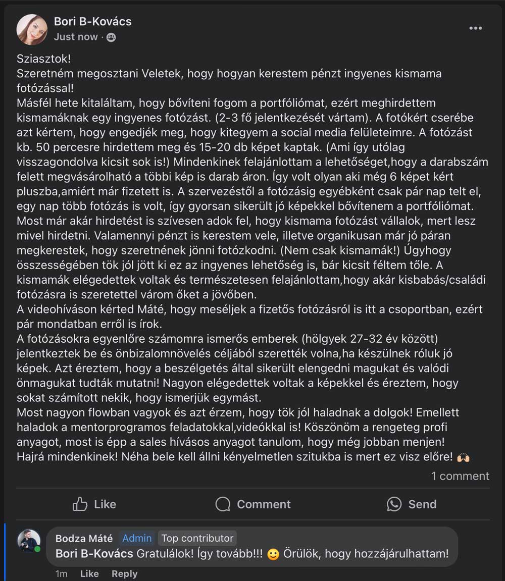 A rendszer, amit adtam nekik, segített áttörni ezen. Ma már többen évi 15+ millió forintot keresnek fotósként, prémium ügyfelekkel. Pontosan ezt a folyamatot mutatom meg neked is a kurzusban, az ő példáikból!